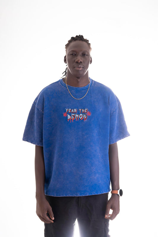 Narasimha Oversized T-Shirt – Royal Blue (320 GSM Heavy Cross Loop Cotton)