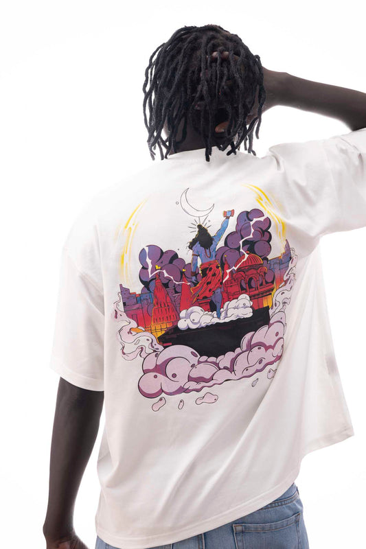 OVER SIZE WHITE T SHIRT SHIVA PRINT