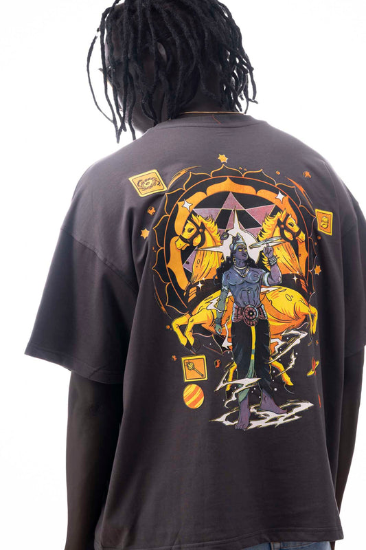 OVER SIZE BLACK T SHIRT ON SHIVA PRINT