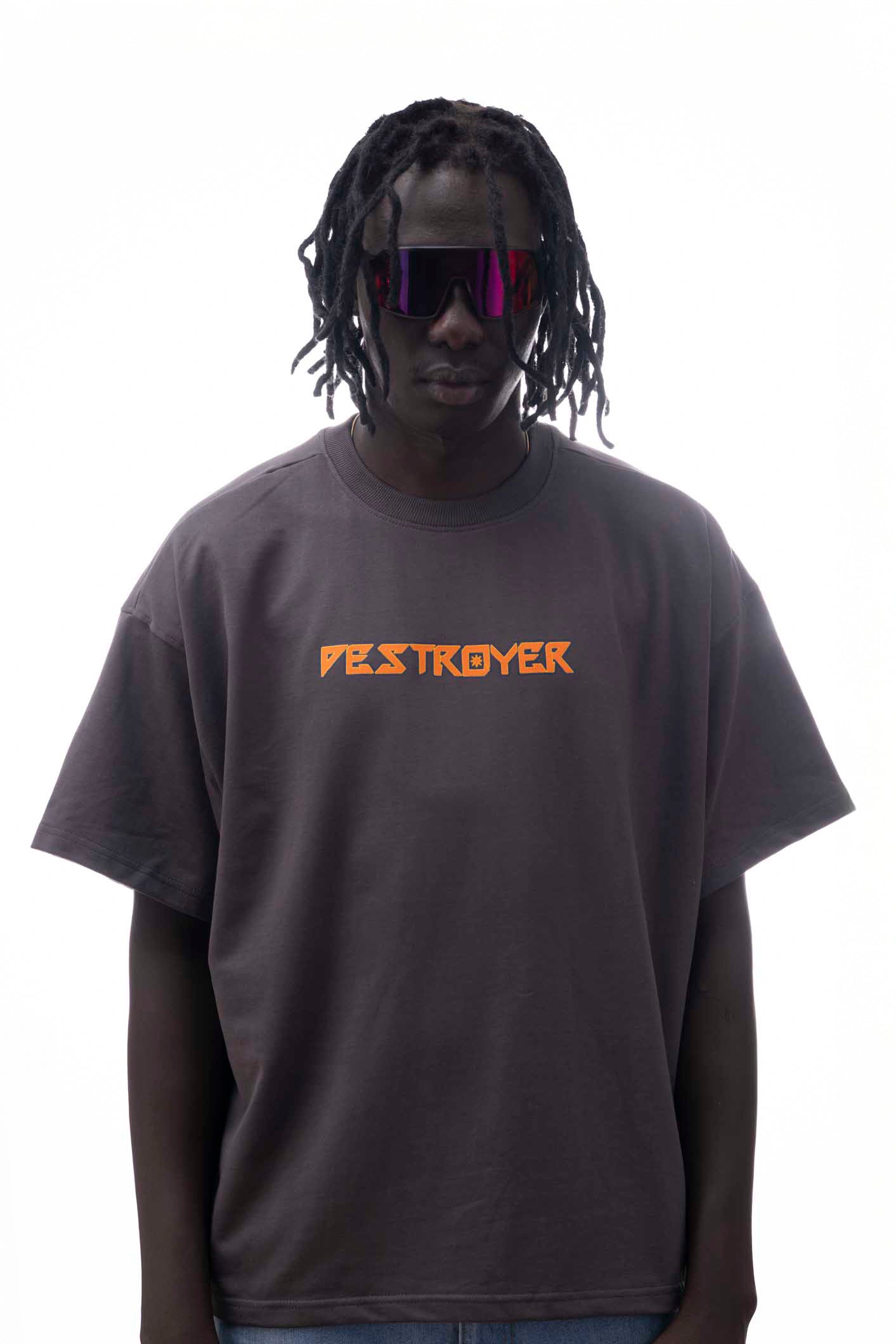 OVER SIZE GRAY T SHIRT WITH KRISHNA PRINT ON IT