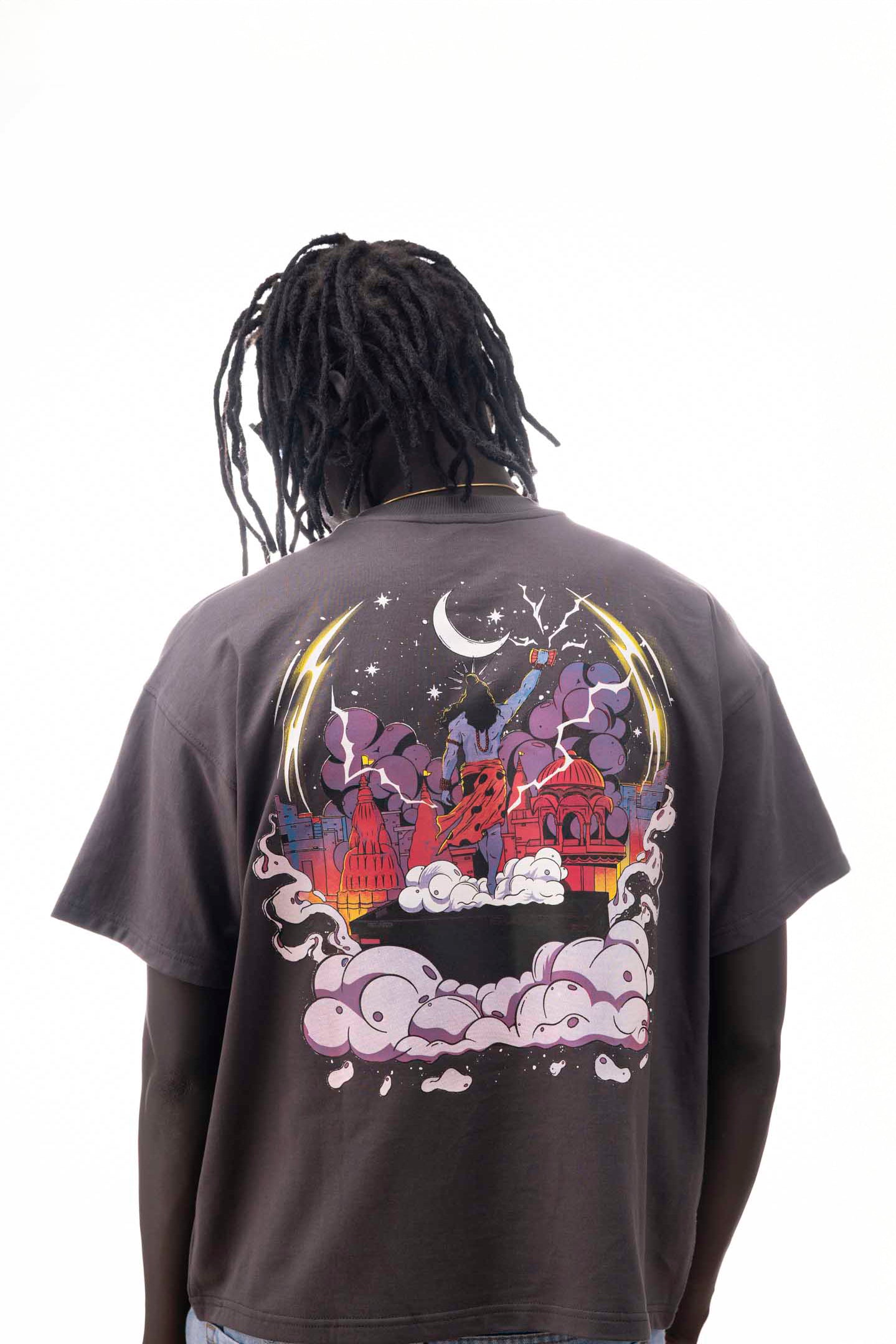 OVER SIZE T SHIRT SHIVE PRINT GREAY COLOR