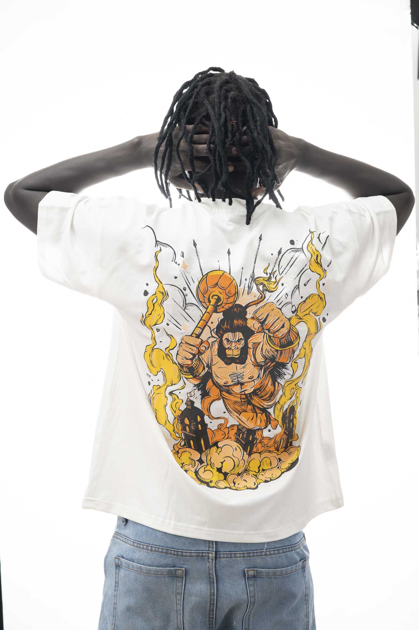 OVER SIZE TEE HANUMAN PRINT ON WHITE